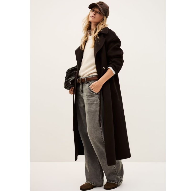 Abrigo largo de lana y poliamida con cierre de cordón y solapas.