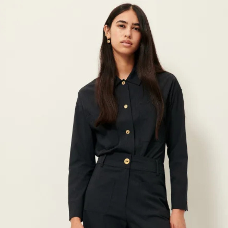 Sobrecamisa en sarga ajustada y elástica con motivo de rayas finas zéphyr exclusivo Sessùn, tejida en Bulgaria.