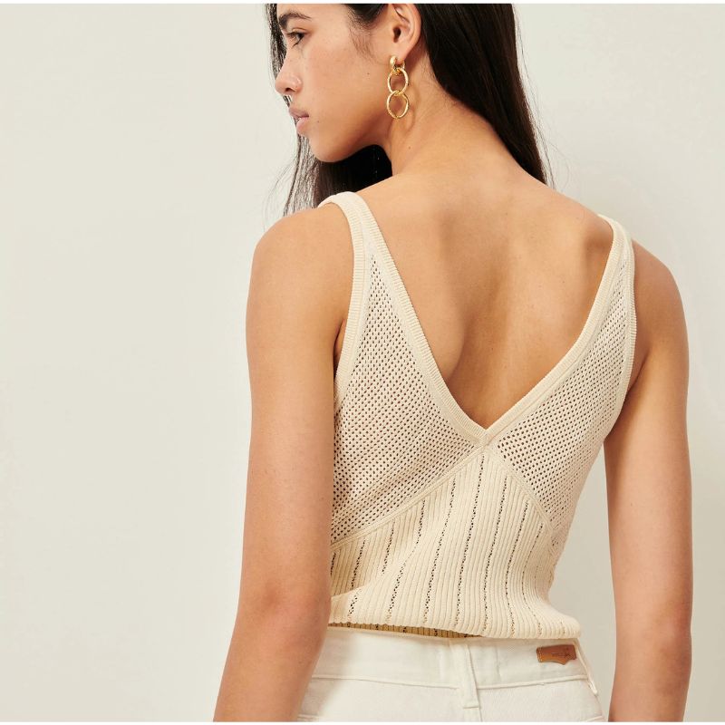 Camiseta sin mangas con diseño de mezcla de acanalados, punto calado y punto de redecilla.