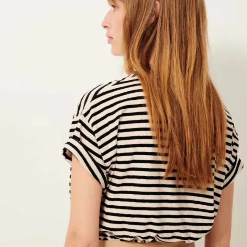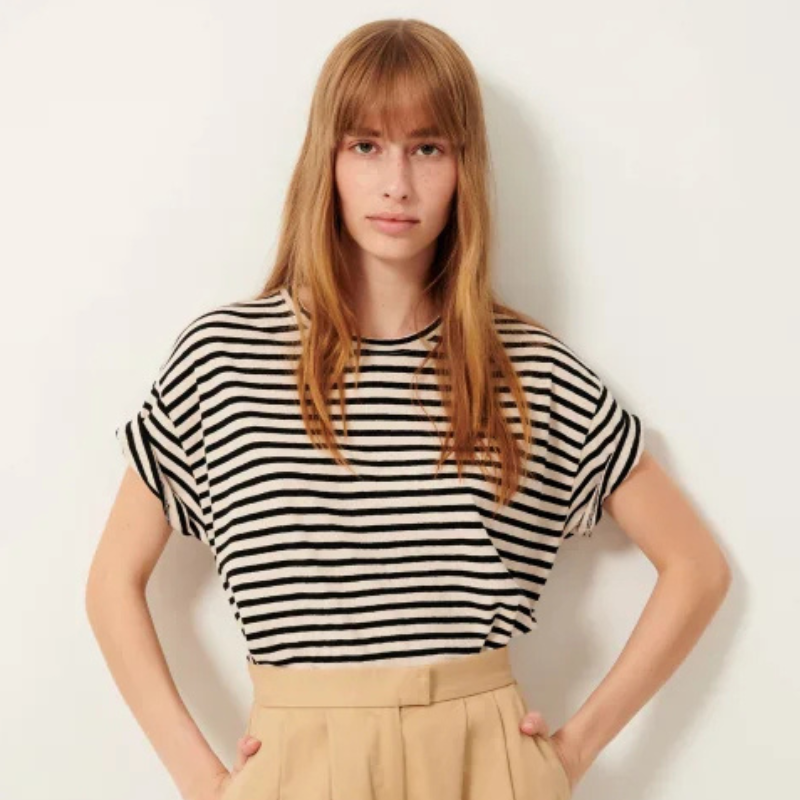 Camiseta amplia en punto de algodón y lino a rayas, confeccionada en Portugal.