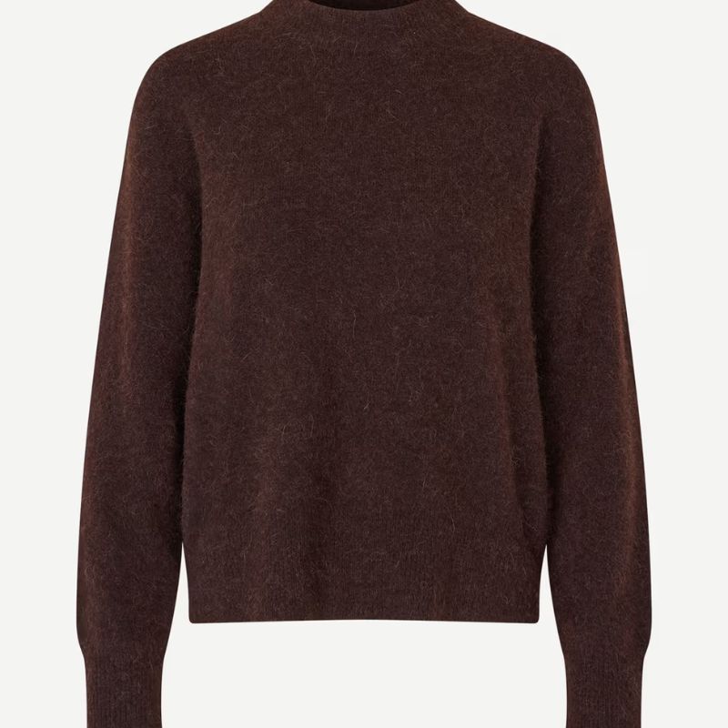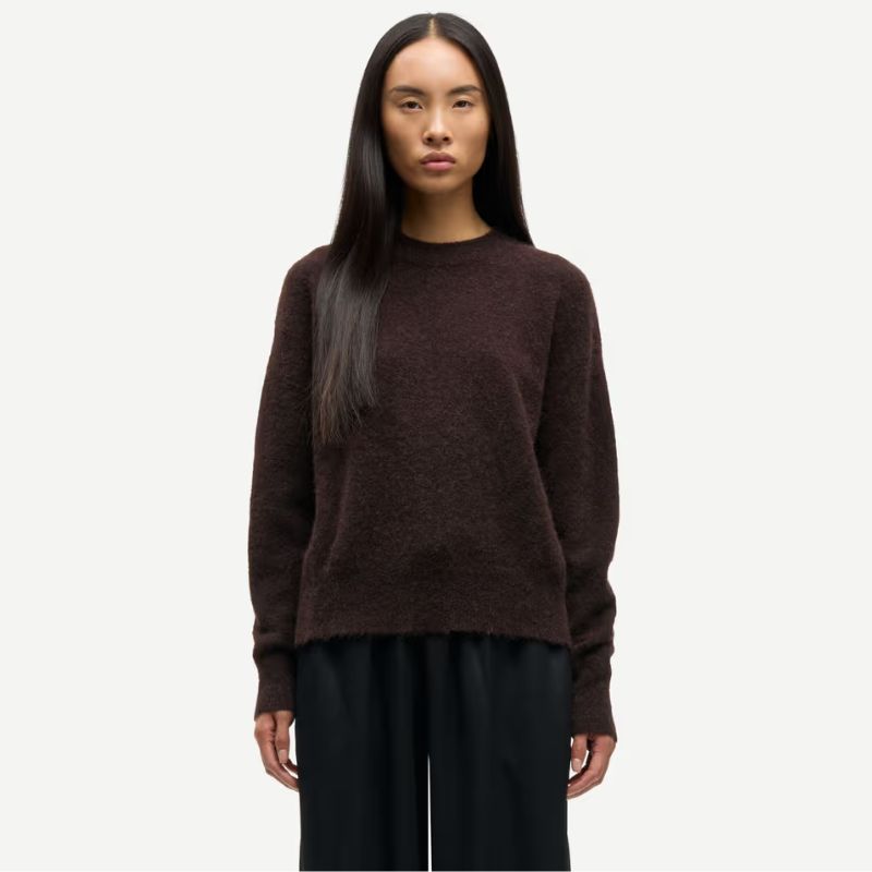 Suéter de corte regular y hombros caídos. Cuello redondo, puños y bajo de punto acanalado. Tejido principal: mezcla elástica de lana y lana de alpaca.