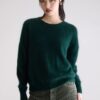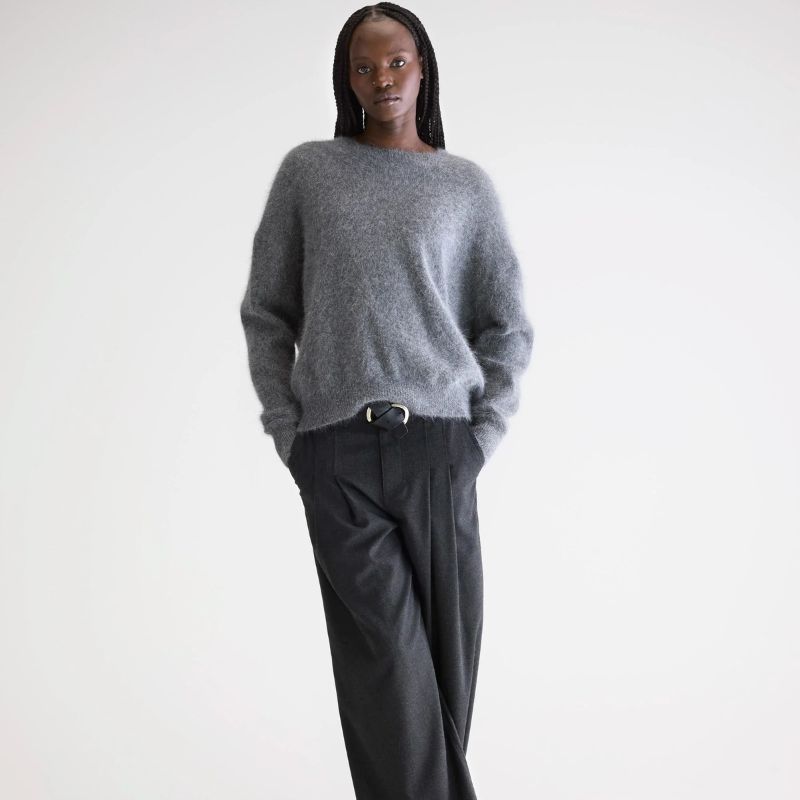 Suéter oversize de cuello redondo en mezcla de angora en verde oscuro y en gris.