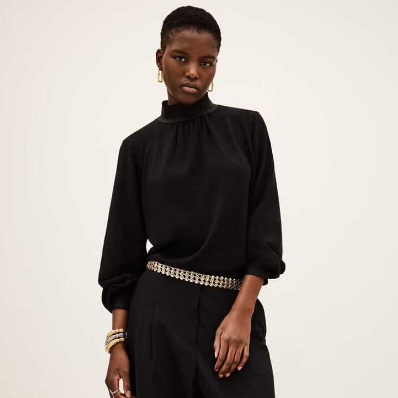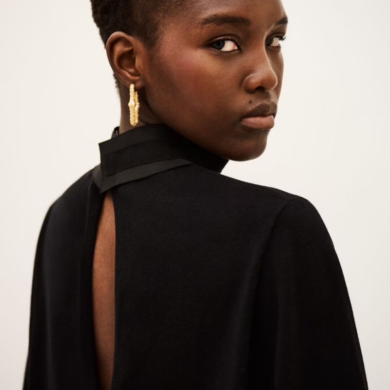 Top de manga larga con detalle en puños y cuello y escote en la espalda.