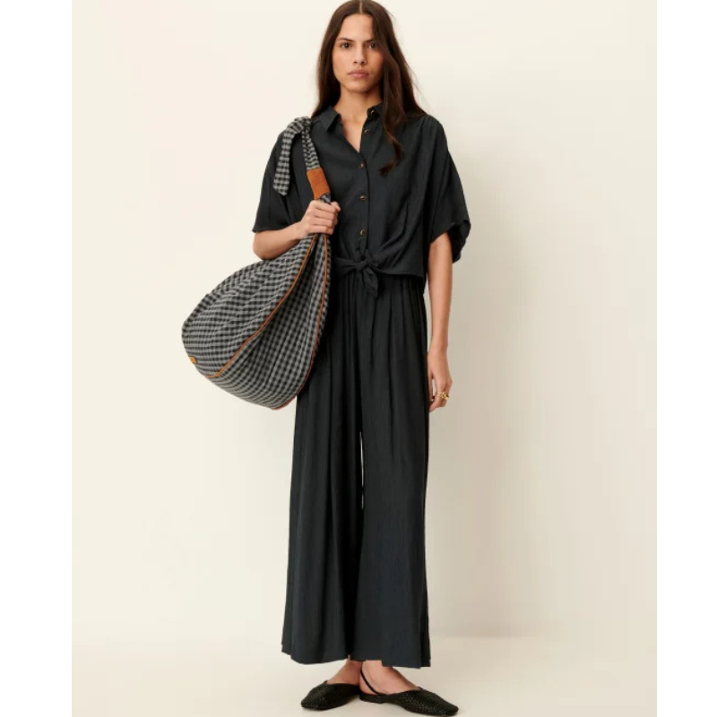Pantalón capri amplio en crespón milrayas flexible de viscosa.
